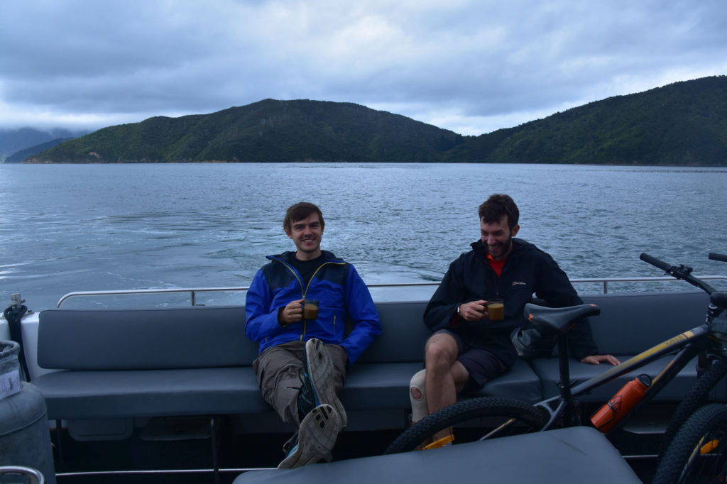 On the first day, we picked up our bikes from the hire shop in Picton, and jumped aboard the ferry which takes you from Picton to Meretoto Cove, the start of the track. It’s a gorgeous sail, with green mountains all around. Even better, they give you complimentary coffee or tea on board, which as Brits we were delighted by. Nothing like jetting up the wild fjords of NZ with a cup of tea in hand.
